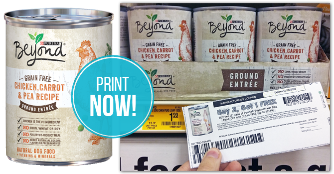 New $5/1 Purina Beyond Dog Food Coupon - as Low as $2.50 at Petsmart ... There is a new Purina Coupon available to print. The coupon is for $5.00 off (1) bag of Purina Beyond brand dry dog food, any size, any variety. Print Purina Beyond Dog Food Coupon. Through today, 11/26 Petsmart has the Purina Beyond Dry Dog Food Bags, 3.5lbs on sale Buy 1, Get 1 FREE.